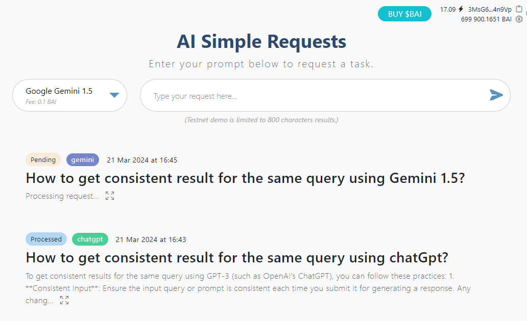 Price in $BAI per request: