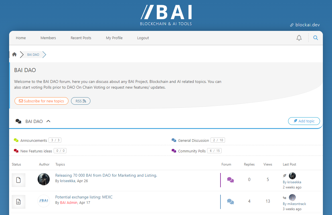 Unlike most actual blockchain DAO, the BAI DAO voting power do not come from how many $BAI token you hold but from how many $BAI token you used on the platform through the different features.