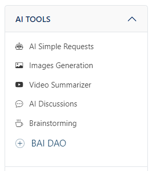 To access the DAO click on the "DAO" entry in the left menu under "AI TOOLS" section.&#x20;